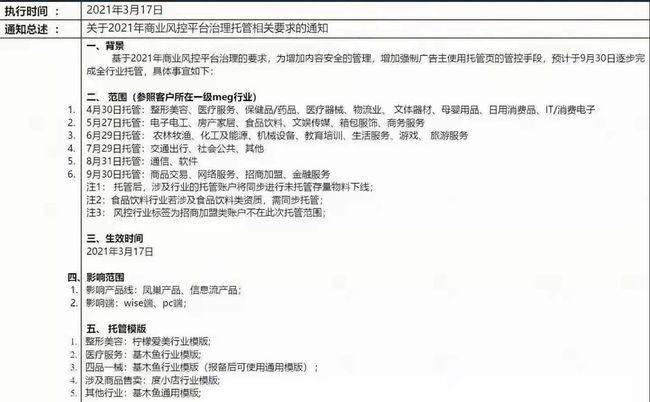 2、金融服务仅托管app下载类,文体器材仅托管户外装备,化工与能源仅托管消毒产品,软件仅托管商用软件,文娱传媒仅托管小说阅读&文书期刊&其他,生活服务、商务服务仅新增部分二级行业进行托管,取消全二级行业托管。
